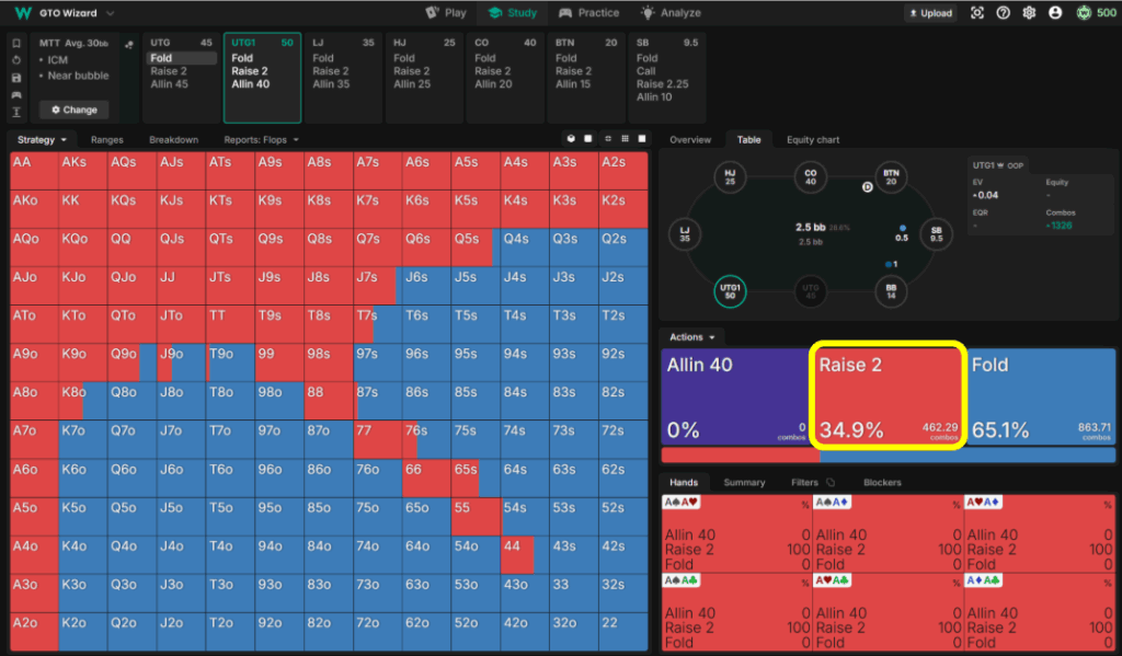 均衡でのUTG1のopen%は34.9%でした!(画像右側の黄色枠)