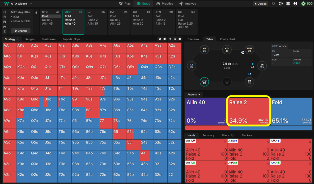 均衡でのUTG1のopen%は34.9%でした!(画像右側の黄色枠)